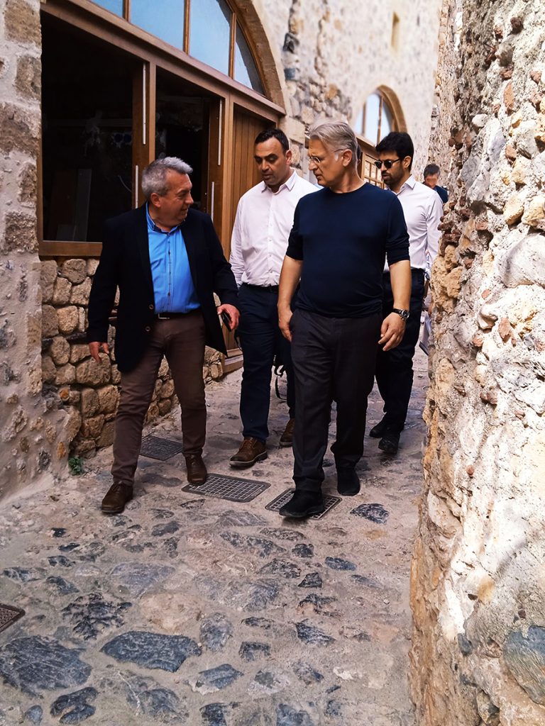 Συνέχεια με το Κάστρο της Μονεμβασιάς, παρουσία του Αντιδημάρχου Σταύρου Χριστάκου, και το απαιτητικό έργο στερέωσης των βραχωδών πρανών που ολοκληρώθηκε με μεγάλη επιτυχία και εντυπωσιακό αποτέλεσμα, συζητήθηκε το έργο του φωτισμού, ενώ έγινε αυτοψία και στο σπουδαίο έργο της μαρίνας Μονεμβασιάς.