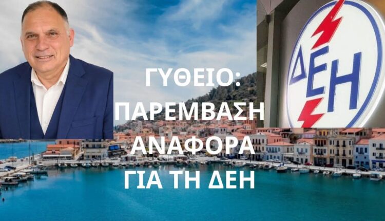 Συντασσόμενος με το ψήφισμα που εξέδωσε, με ομόφωνη Απόφασή του χθες, το Δημοτικό Συμβούλιο Δήμου Ανατολικής Μάνης, σχετικά με το αιφνιδιαστικό κλείσιμο του υποκαταστήματος της ΔΕΗ Α.Ε. στο Γύθειο, ο βουλευτής Π.Ε. Λακωνίας κ. Νεοκλής Κρητικός, απέστειλε Αναφορά υπόψη των Υπουργών Εθνικής Οικονομίας και Οικονομικών και Περιβάλλοντος και Ενέργειας.