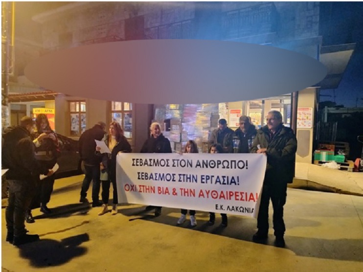 Το Εργατοϋπαλληλικό Κέντρο Λακωνίας και το Σωματείο Ιδιωτικών Υπαλλήλων πραγματοποίησαν το απόγευμα της Τετάρτης 14 Ιανουαρίου 2026 συμβολική παρέμβαση στο Super Market όπου, σύμφωνα με καταγγελία, εργαζόμενη μητέρα και συνδικαλίστρια αντιμετώπισε άρνηση εξυπηρέτησης όταν επιχείρησε να αγοράσει βασικά είδη για το παιδί της.