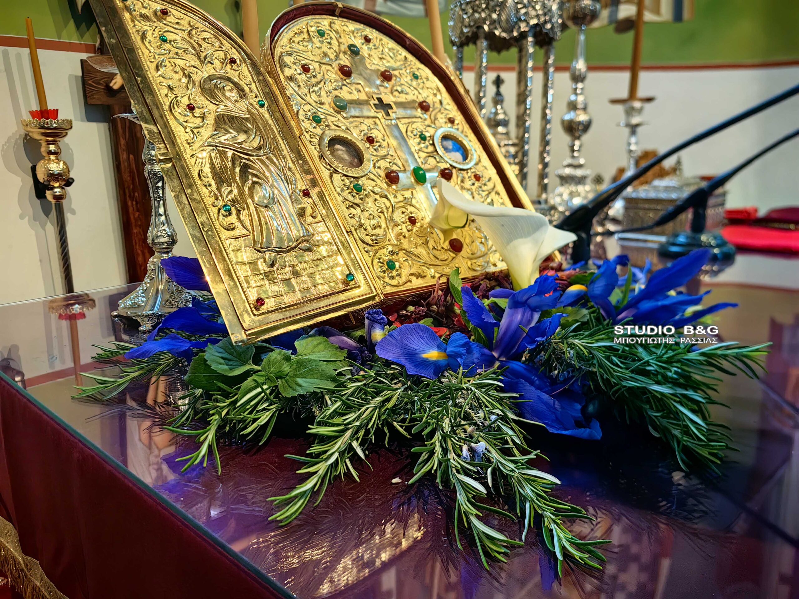 Ο Μητροπολίτης Αργολίδας κατά την θεία λειτουργία ευλόγησε τα σταυρολούλουδα , τα οποία συνηθίζεται να δίνονται ως ευλογία στους πιστούς.