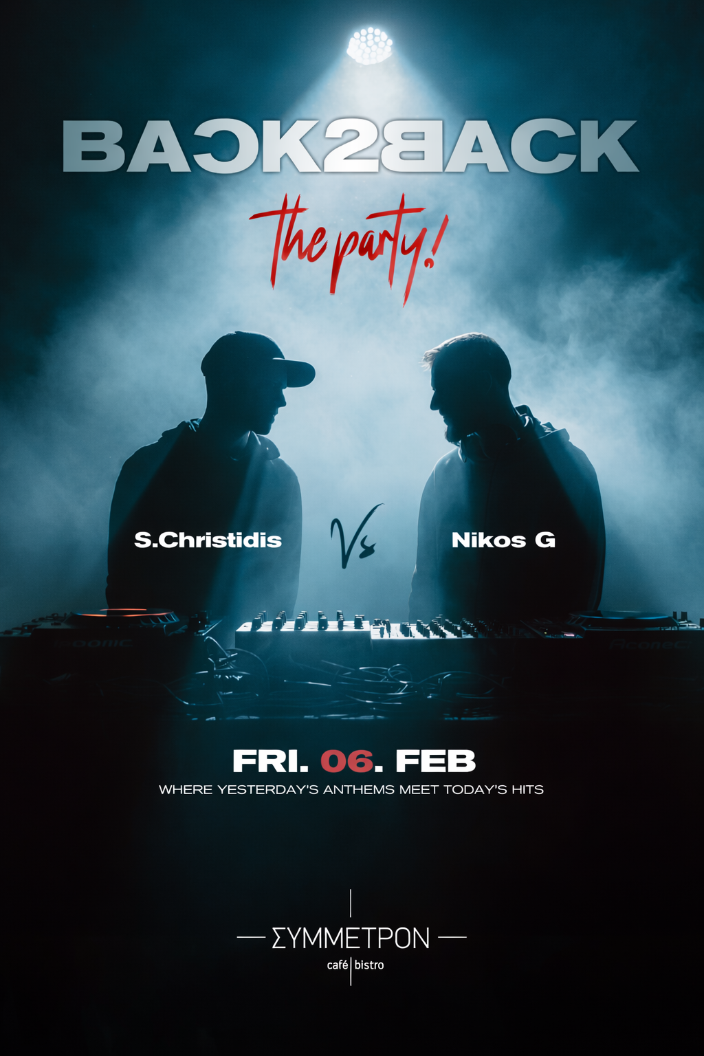 Η νύχτα αποκτά τον δικό της παλμό αυτή την Παρασκευή 6 Φεβρουαρίου. Ετοιμαστείτε για μια βραδιά όπου ο ήχος, το στιλ και η ατμόσφαιρα συνδυάζονται ιδανικά, προσφέροντας μια εμπειρία γεμάτη λάμψη και ρυθμό. Οι djs NikosG και S.Christidis ενώνουν τις μουσικές “δυνάμεις” για ένα μοναδικό back2back set, με τον πιο απολαυστικό ρυθμό. Ένα μουσικό ταξίδι με εναλλαγές που θα κρατούν την ενέργεια στα ύψη που περιλαμβάνει: