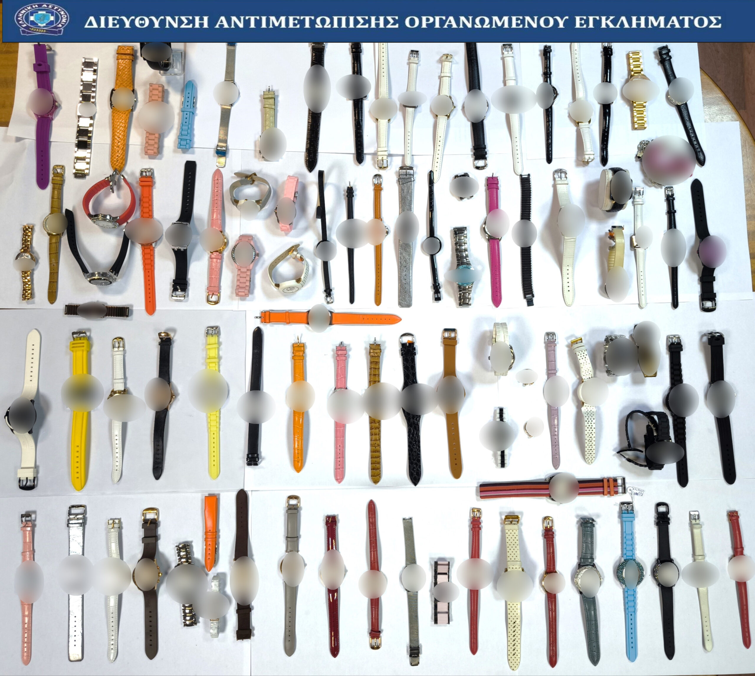 Από την κατοχή του, καθώς και σε έρευνα που πραγματοποιήθηκε στην οικία του, βρέθηκαν και κατασχέθηκαν, πιστόλι με -5- φυσίγγια καθώς και συνολικά -94- ρολόγια, τα οποία αναγνωρίσθηκαν από τον υπεύθυνο ασφαλείας της εταιρείας, ως μέρος των κλαπέντων.