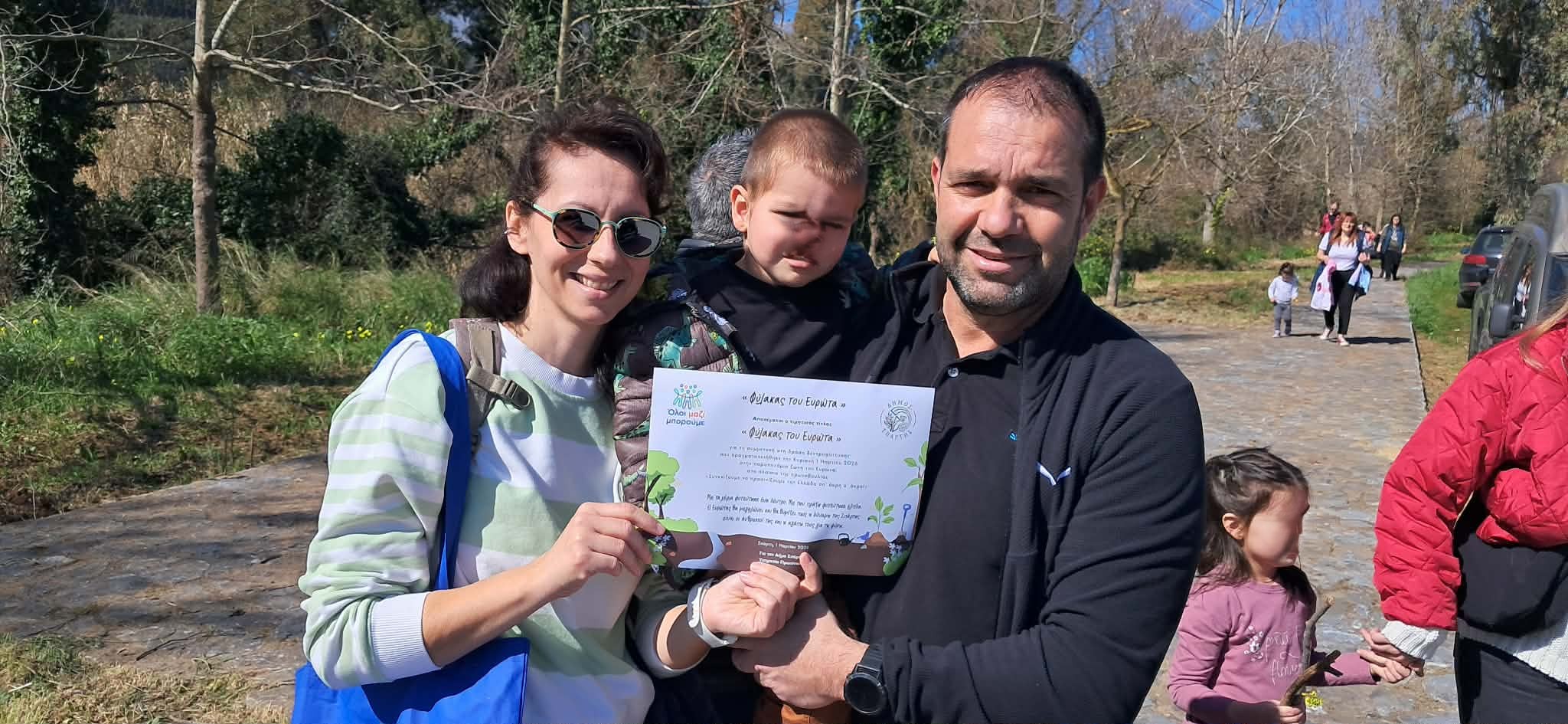 Με την ολοκλήρωση της δενδροφύτευσης, στην οποία συμμετείχαν ενεργά Αντιδήμαρχοι Σπάρτης, ο Πρόεδρος και μέλη του Δημοτικού Συμβουλίου Σπάρτης, τα παιδιά λάμβαναν ως βραβείο τον τιμητικό τίτλο «Φύλακας του Ευρώτα» για τη συμμετοχή τους στη δενδροφύτευση και την αγάπη τους για το Περιβάλλον.