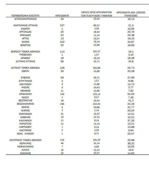 Τα κρούσματα σήμερα στην Αττική