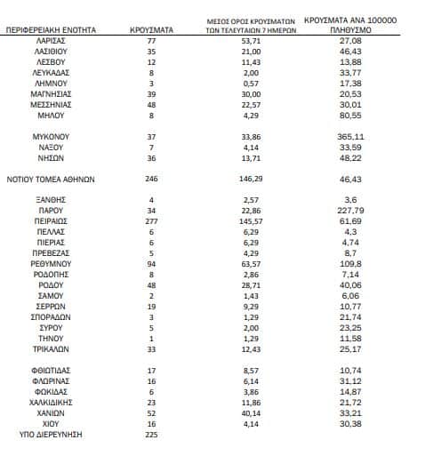 Αναλυτικά η κατανομή των νέων κρουσμάτων σε όλη τη χώρα: