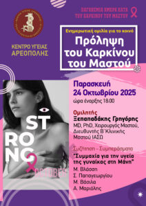 Ενημερωτική ομιλία για την πρόληψη του καρκίνου του μαστού στο Κέντρο Υγείας Αρεόπολης
