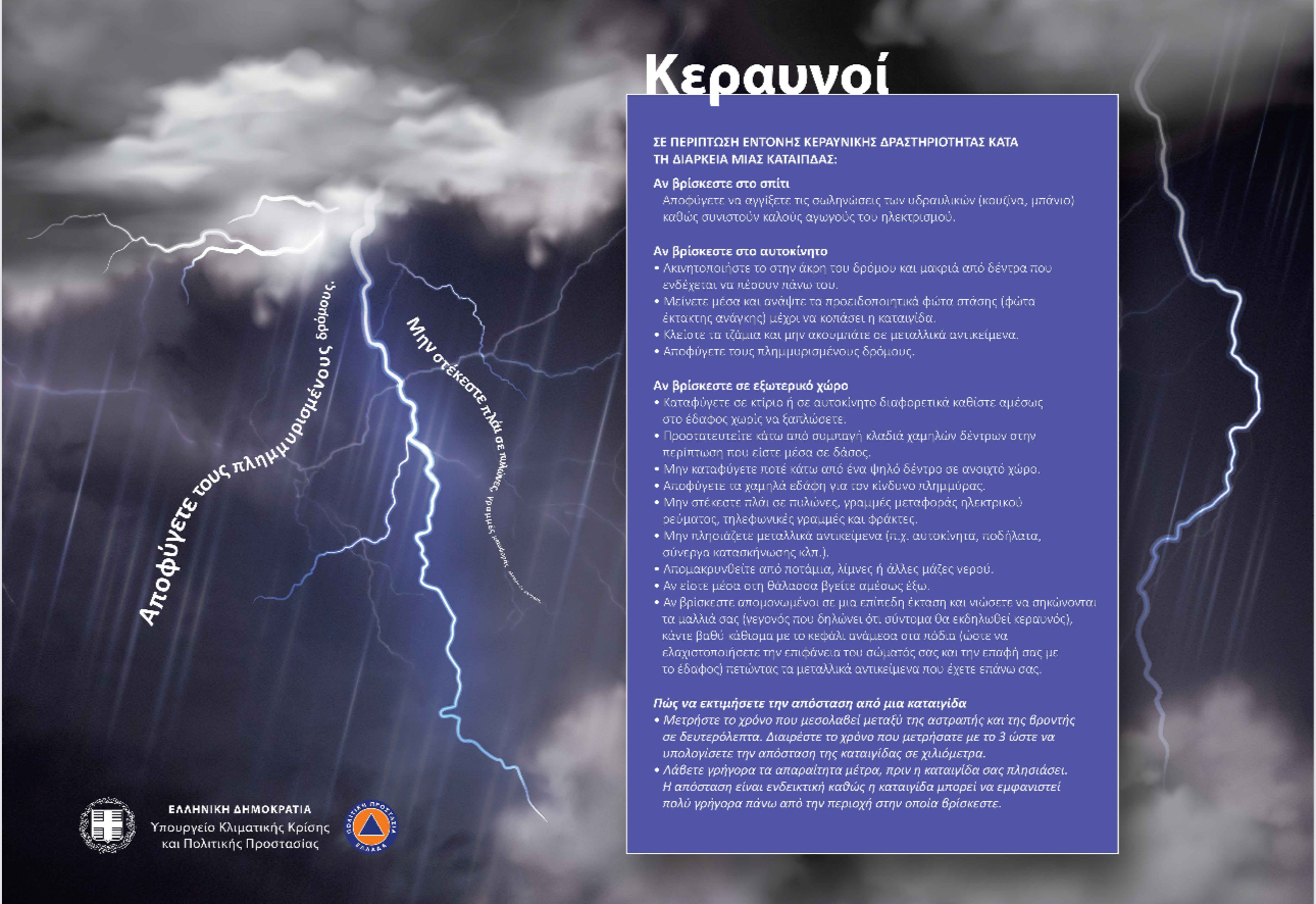 Για περισσότερες πληροφορίες και οδηγίες αυτοπροστασίας από τα έντονα καιρικά φαινόμενα, οι πολίτες μπορούν να επισκεφθούν την ιστοσελίδα της Γενικής Γραμματείας Πολιτικής Προστασίας στην ηλεκτρονική διεύθυνση civilprotection.gov.gr.