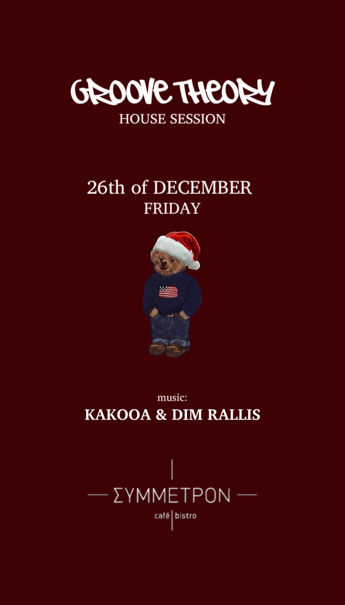 Την Παρασκευή 26 Δεκεμβρίου, η Λέσχη Σπάρτης Σύμμετρον μπαίνει σε house ρυθμούς και σας προσκαλεί σε ένα βράδυ γεμάτο groove, λάμψη και ενέργεια.