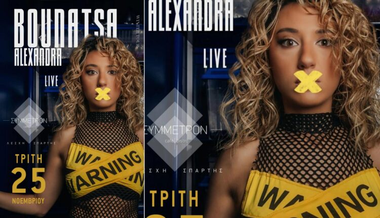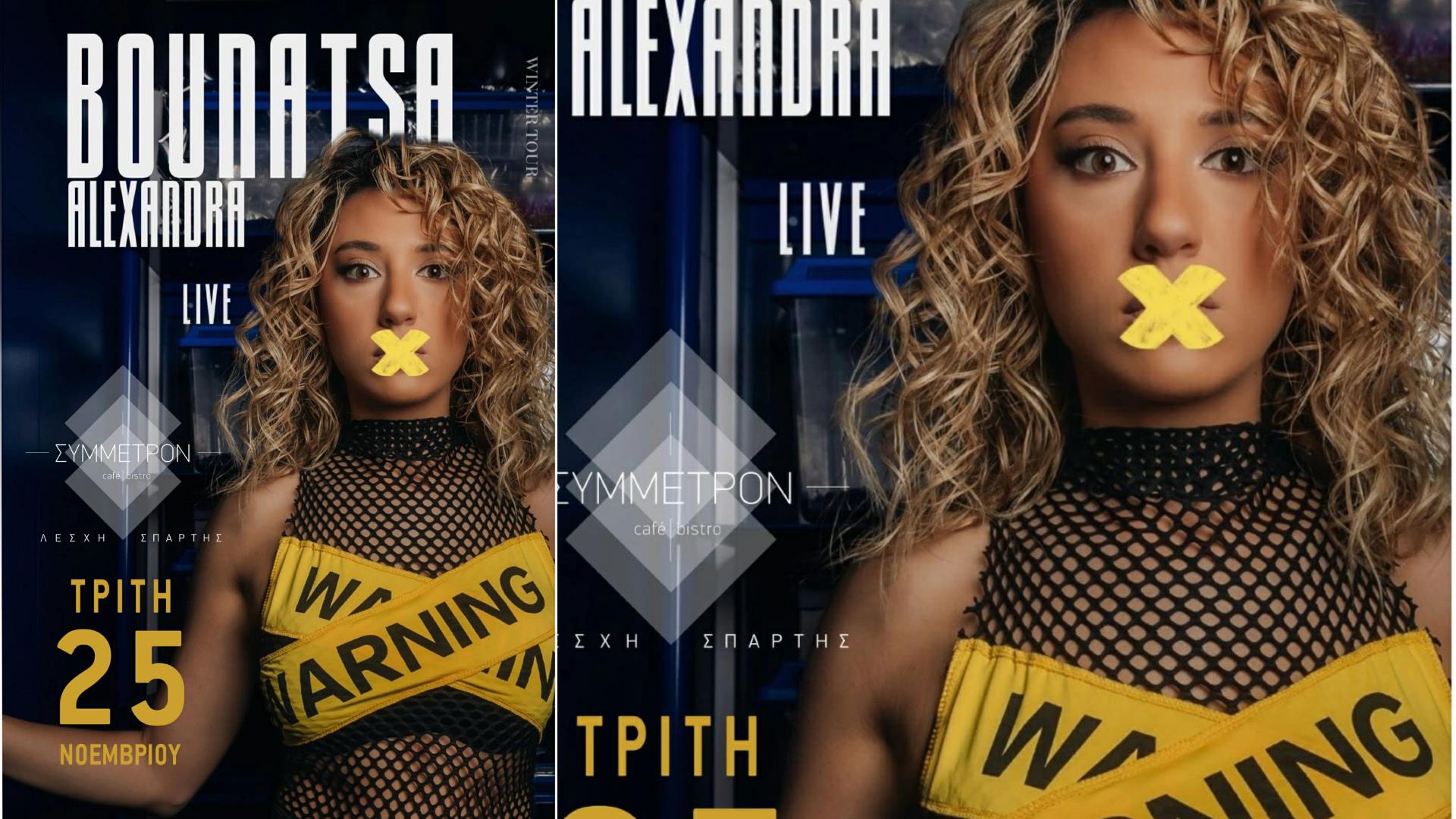 Η Αλεξάνδρα Μπουνάτσα, μας υποδέχεται στο δικό της ταξιδιάρικο κόσμο. Αυτή την Τρίτη 25 Νοεμβρίου παραμονή της αργίας του Οσίου Νίκωνος, η Λέσχη Σπάρτης Σύμμετρον υποδέχεται την Αλεξάνδρα Μπουνάτσα και την μπάντα της με σκοπό να μας ξεσηκώσει με το ανανεωμένο της πρόγραμμα, στα πλαίσια του χειμερινού της tour. Με τον καινούργιο της δίσκο “Ένα γύρο τον κόσμο” στις αποσκευές της και 10 ολοκαίνουργια τραγούδια να μπλέκουν σε ένα πρόγραμμα γεμάτο mainstream ποπ και λαϊκές πινελιές, αυτό το live της θα μας μείνει αξέχαστο.