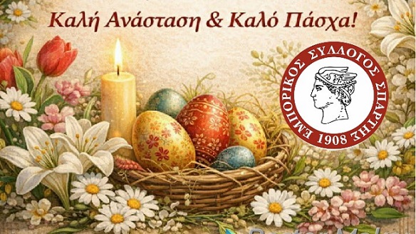 Ο Πρόεδρος και το Διοικητικό Συμβούλιο του Εμπορικού Συλλόγου Σπάρτης σας εύχονται ολόθερμα η Ανάσταση του Κυρίου να φέρει στις οικογένειες σας Υγεία, Αγάπη, Ειρήνη, Ευτυχία, Ευημερία και να γεμίσει τις ψυχές όλων μας με Ελπίδα, Δύναμη και Αισιοδοξία.