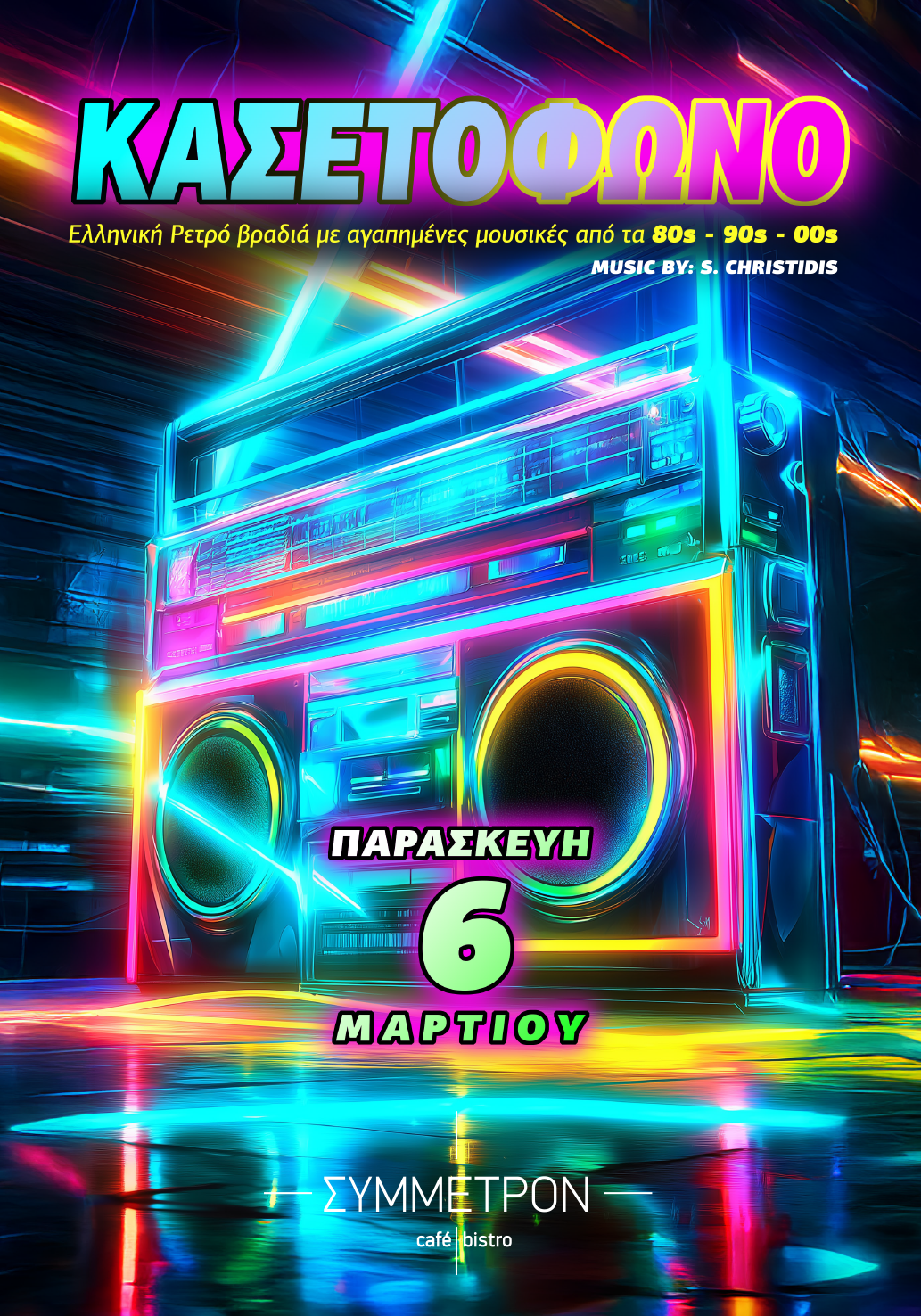 Αυτή την Παρασκευή 6 Μαρτίου, θα’ναι σαν να μπαίνει η Άνοιξη. Η Λέσχη Σπάρτης Σύμμετρον, συνεχίζει την μελωδική αναδρομή της στην πιο χρυσή εποχή της εμπορικής Ελληνικής μουσικής παρέα με την καλύτερη διάθεση για διασκέδαση.
