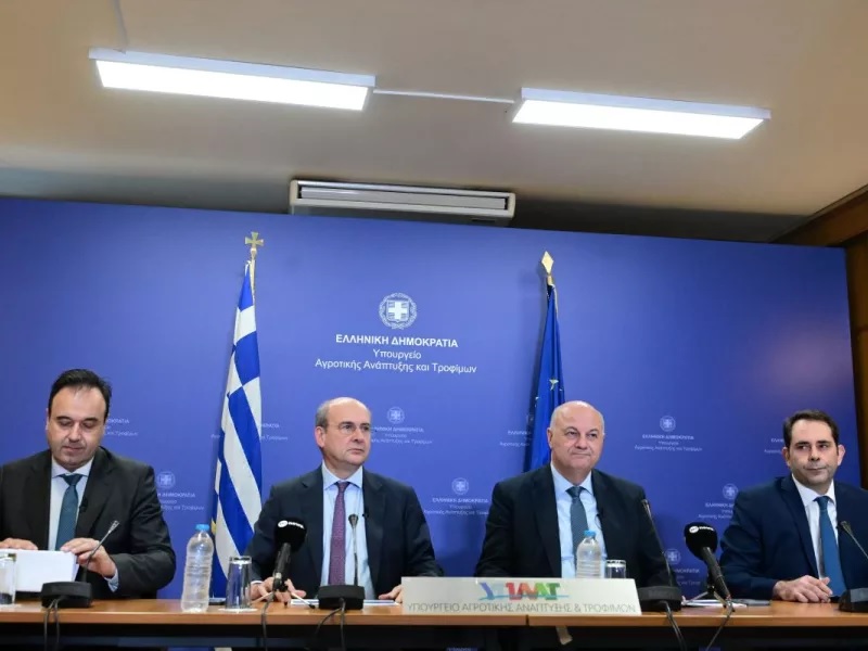 Συνέντευξη Τύπου παραχωρούν αυτήν την ώρα στα γραφεία του ΥΠΑΑΤ ο αντιπρόεδρος της Κυβέρνησης Κωστής Χατζηδάκης και οι υπουργοί Αγροτικής Ανάπτυξης και Τροφίμων Κώστας Τσιάρας και Ψηφιακής Διακυβέρνησης Δημήτρης Παπαστεργίου, καθώς και ο υφυπουργός Εθνικής Οικονομίας και Οικονομικών Θάνος Πετραλιάς, όπου εξειδικεύουν τα μέτρα στήριξης των αγροτών.