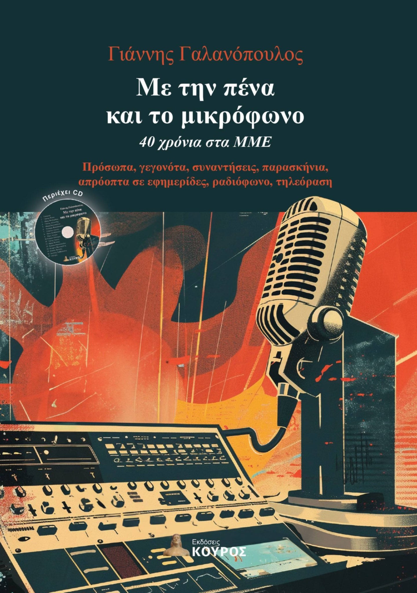 Οι Εκδόσεις ΚΟΥΡΟΣ, ο εκδότης μας, κ. Δημήτρης Φύκιρης, οι συνεργάτες μας κι εγώ, αισθανόμαστε μεγάλη χαρά και συγκίνηση που κρατάμε στα χέρια μας το νέο βιβλίο του Δημοσιογράφου & Συγγραφέα, Γιάννη Γαλανόπουλου με τίτλο: «Με την πένα και το μικρόφωνο», 40 χρόνια στα ΜΜΕ.