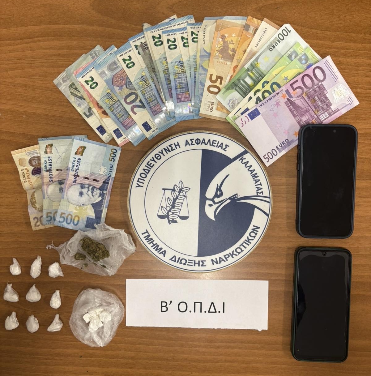 Συνελήφθησαν, χθες (29.3.2026) το απόγευμα, στην Ε.Ο. Φιλιατρών-Κορυφασίου, από αστυνομικούς του Τμήματος Δίωξης Ναρκωτικών της Υποδιεύθυνσης Δίωξης και Εξιχνίασης Εγκλημάτων Καλαμάτας, σε συνεργασία με τη Β’ Ομάδα Πρόληψης και Διαμεσολάβησης (Ο.Π.ΔΙ) Μεσσηνίας, -2- ημεδαποί, ηλικίας 26 και 24 ετών, αντίστοιχα, γιατί αρχικά σε έλεγχο σε όχημα στο οποίο επέβαιναν, κατελήφθησαν να κατέχουν από κοινού ποσότητες κοκαΐνης, συνολικού βάρους -9,3- γραμμαρίων, οι οποίες κατασχέθηκαν. Επιπλέον, στην κατοχή τους βρέθηκαν συνολικά και κατασχέθηκαν, το χρηματικό ποσό των -1.215- ευρώ και το χρηματικό ποσό των χιλίων διακοσίων -1.200- ΛΕΚ, ως προερχόμενα από τη διακίνηση ναρκωτικών ουσιών καθώς και -2- κινητά τηλέφωνα, ως μέσα επικοινωνίας για την τέλεση αξιόποινων πράξεων. Σε έρευνες, που διενεργήθηκαν στις οικίες τους με την συνδρομή αστυνομικού σκύλου ανίχνευσης ναρκωτικών Μεσσηνίας, στον26χρονο βρέθηκαν και κατασχέθηκαν, μικροποσότητα κάνναβηςκαι μικροποσότητα κοκαΐνης.