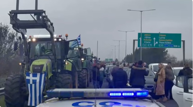 Οι αγρότες αποκλείουν τη διέλευση μόνο των φορτηγών και αφήνουν να περνούν ελεύθερα τα ΙΧ και τα λεωφορεία.