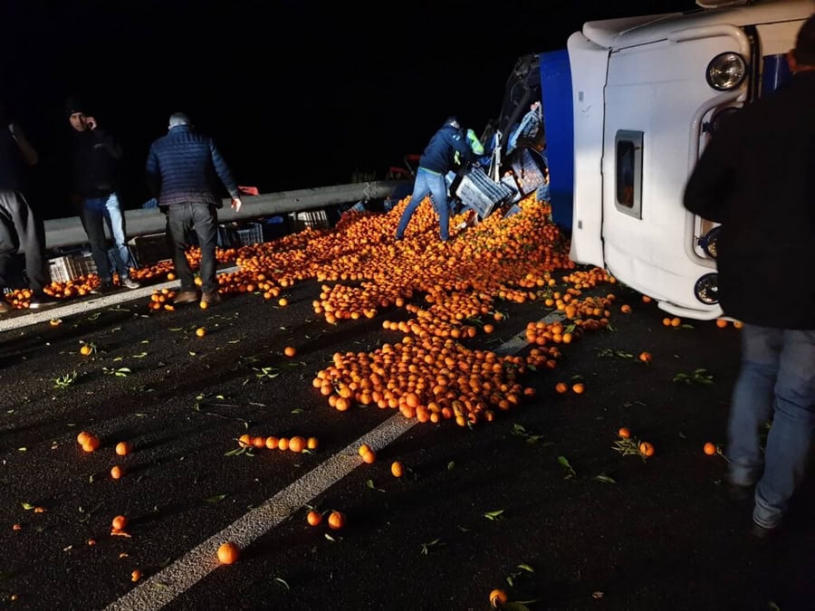Τροχαίο ατύχημα με νταλίκα που μετέφερε πορτοκάλια σημειώθηκε το μεσημέρι της Κυριακής (12/01) στον αυτοκινητόδρομο Λεύκτρο – Σπάρτη, κοντά στα διόδια.