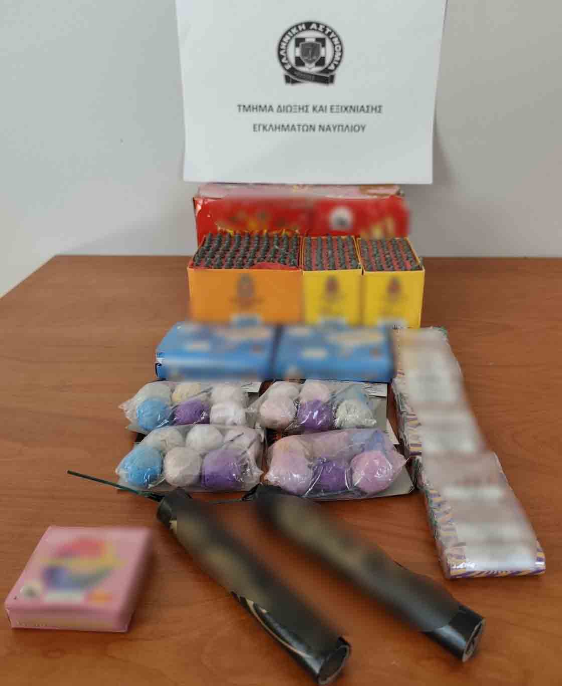 Συνελήφθη, χθες (6.4.2026) το μεσημέρι, σε τοπική κοινότητα του δήμου Ναυπλιέων, από αστυνομικούς του Τμήματος Δίωξης και Εξιχνίασης Εγκλημάτων Ναυπλίου, 55χρονη ημεδαπή, γιατί σε έρευνα που πραγματοποιήθηκε στην οικία της και σε κατάστημα ιδιοκτησίας της, βρέθηκαν συνολικά και κατασχέθηκαν, -2- κροτίδες, -57-τεμάχια πυροτεχνικών παιδικών αθυρμάτων διαφόρων τύπων και -200- τεμάχια βολών από πυροτεχνήματα.