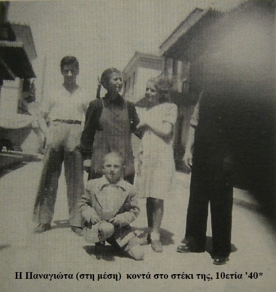 Όταν ήρθε ο πόλεμος του ’40 και η κατοχή η ζωή της Παναγιώτας έγινε ακόμα πιο δύσκολη και σκληρή. Όμως δε λύγισε ποτέ. Μέσα σ’ αυτό το λιγνό και ταλαιπωρημένο κορμάκι κρυβόταν μια μεγάλη και αδάμαστη ψυχή. Συνέχισε τον δικό της πόλεμο πασχίζοντας να μείνει ζωντανή. Με το κασελάκι στον λαιμό ή σπρώχνοντας το καροτσάκι πουλούσε ό,τιμπορούσε και ό,τι έβρισκε. Κι όταν ξέμενε, από πραμάτειες έκανε και το λουστράκι, γινότανε και βοηθός μανάβη στο παζάρι κι όποια άλλη δουλειά του ποδαριού έβρισκε. Στη μεγάλη πείνα της κατοχής έζησε με βελάνιπου το στουμπανάγανε και κάνανε ψωμί, πήγαινε (μαζί με άλλα παιδιά) και στο παλιό Γυμνάσιο Αρρένων που μαγειρεύανε οι Ιταλοί και οι Γερμανοί να της δώσουνε κάνα κατσαρολάκι φαΐ απ’ το καζάνι, βοηθάγανε και οι γείτονες με λίγο λάδι, κάνα κομμάτι ψωμί, λίγες πατάτες…έζησε η Παναγιώτα.