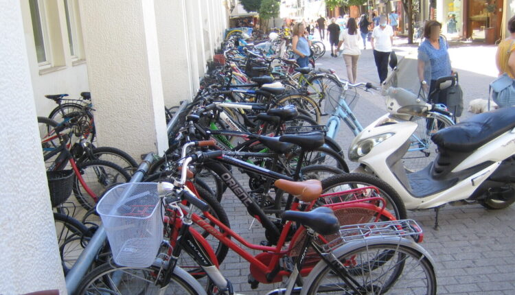 Αυτή είναι μια φωτογραφία από την Καρδίτσα: Δεκάδες ποδήλατα πολιτών οι οποίοι βγήκαν στην πόλη με ένα ποδήλατο αντί για αυτοκίνητο.