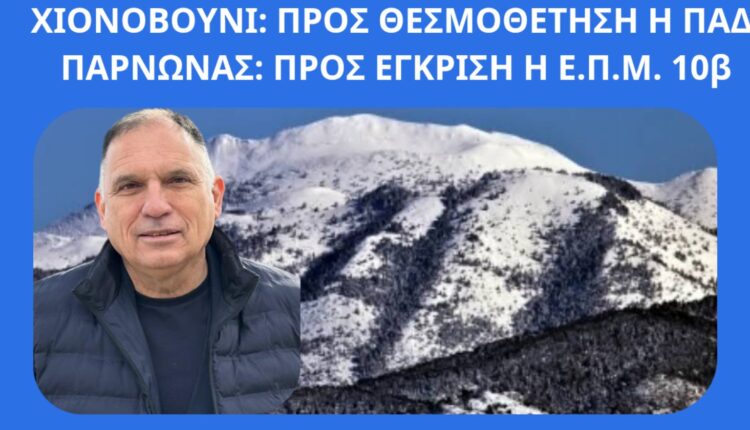 Μετά την Ερώτηση που κατέθεσε ο κ. Κρητικός στις 6.2.2026 υπόψη του Υπουργού Περιβάλλοντος Σταύρου Παπασταύρου -η οποία ήλθε ως συνέχεια παλαιότερων Αναφορών του και διαδοχικών συναντήσεων με την πολιτική και υπηρεσιακή ηγεσία του Υπουργείου- και μετά από πρόσφατη επικοινωνία που είχε με τον κ. Υπουργό, ενημερώθηκε πως προωθήθηκε η πρόταση, ώστε: το Χιονοβούνι να ενταχθεί στις θεσμοθετημένες ΠΑΔ.