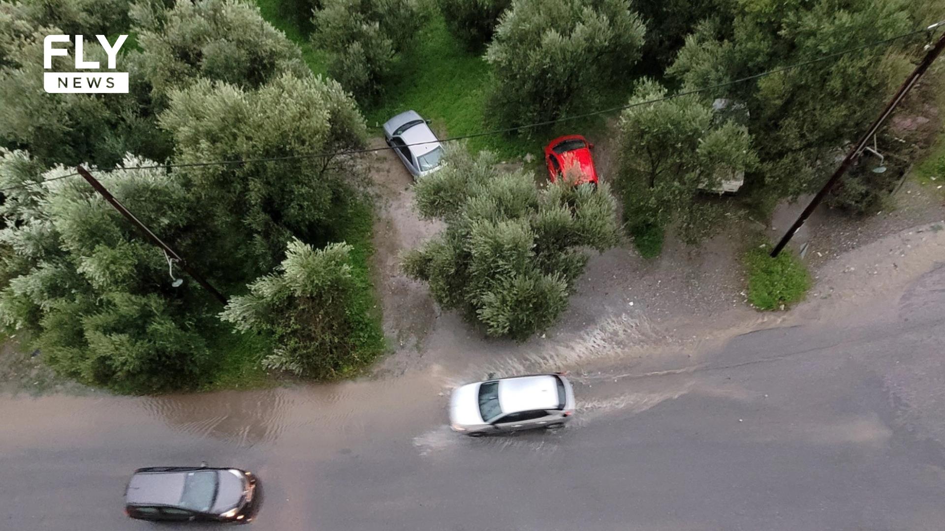 Στις φωτογραφίες φαίνεται η επικίνδυνη κατάσταση για οδηγούς και πεζούς που δημιουργείται κάθε φορά που έχουμε μια ισχυρή νεροποντή. Χωρίς διαπλάτυνση (ενώ για το κομμάτι με τις ελιές δεν υπάρχουν τίτλοι ιδιοκτησίας), χωρίς πεζοδρόμια και με επικίνδυνη κλίση στρίβοντας από τη Λεωνίδου.