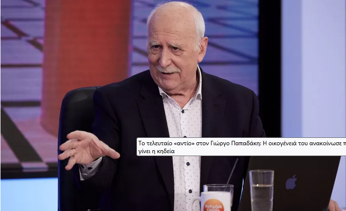 Η οικογένεια του Γιώργου Παπαδάκη εκφράζει τις θερμές της ευχαριστίες σε όλους όσοι στέκονται δίπλα της αυτές τις δύσκολες ώρες, δείχνοντας κατανόηση, συμπαράσταση και σεβασμό στο πένθος της.