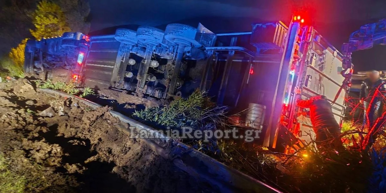 Τροχαίο ατύχημα σημειώθηκε τα μεσάνυχτα της Κυριακής στην εθνική οδό Αθηνών-Λαμίας, στο 117ο χλμ., όταν νταλίκα που μετέφερε εσπεριδοειδή εξετράπη της πορείας της και ανετράπη εκτός δρόμου.