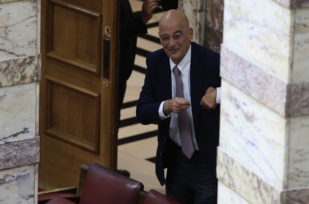 Στην αίθουσα εμφανίστηκε και ο υπουργός Άμυνας Νίκος Δένδιας, ο οποίος επέλεξε να καθίσει στα πίσω «ορεινά» έδρανα.